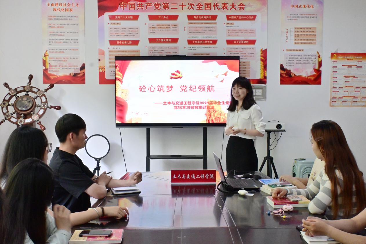 思想引领,厚植家国情怀。各学院将思想政治教育充分融入毕业生文明离校主题教育全过程,通过召开主题班会、主题党课、毕业生党员座谈会,开展特色团日活动等,深入开展党性党风党纪教育,深化理想信念教育、爱国主义教育和社会责任教育。通过召开政策宣讲会、毕业生应征入伍座谈会等方式,勉励广大毕业生积极响应党和国家号召,踊跃参军入伍,积极申报西部计划、乡村振兴计划等,引导毕业生坚定与时代主题同心同向的理想信念,勇担时代使命和历史责任。