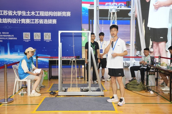 本次大赛由江苏省土木建筑学会主办,常州大学承办,共有来自国产av 、河海大学、南京航空航天大学等30余所省内高校、54支参赛队、300余名土木工程专业本科学生参加。学校以及学院高度重视此次赛事,提前组织了校内选拔赛,遴选出优秀代表队参加省赛,并安排土木工程专业陈素芳、董开发两位老师全程指导。本次竞赛以“考虑水平振动的高耸塔式结构”为主题,通过在赛题中加入部分待定参数,赋予赛题更多灵活性。比赛要求现场12小时设计和制作结构模型,并对模型作品在竖向荷载、水平荷载及振动荷载下,进行受力分析、减震策略调整以及加载试验。作为大学生科技创新的重要赛事,土木工程结构设计创新竞赛着重考验学生的计算分析、设计、试验等综合能力。