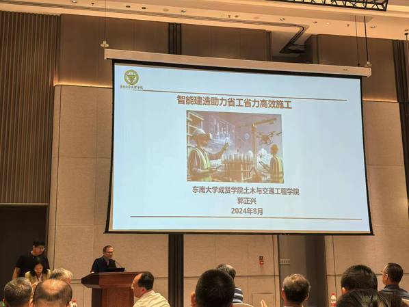 本次研讨会围绕校企合作典型案例、智能建造与施工安全、教学与科技创新研讨等主题,邀请了清华大学方东平教授,河北建工集团总工程师安战法,中建路桥集团有限公司党委副书记、总经理赵文忠等来自全国各地高校、建筑施工企业的顶级专家参会。交流会上,郭正兴教授结合“智能建造与施工安全”主题,作了题为《智能建造助力省力省工高效施工》的主题报告,详细阐释了装配式技术、BIM技术在工程施工领域中的应用。