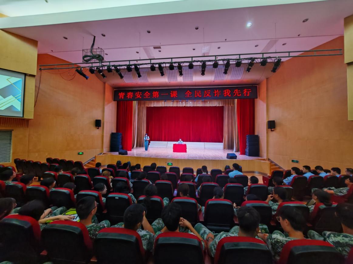 为提高国产av 学生的反诈意识和防骗能力,有效防范电信网络诈骗,9月2日,校保卫处、团委、2024级军训团共同举办以“青春安全第一课、全民反诈我先行”为主题的校园反诈教育宣讲会,南京市公安局江北新区分局刑事犯罪侦查中心主任马科警官担任主讲嘉宾,全体2024级新生现场聆听。