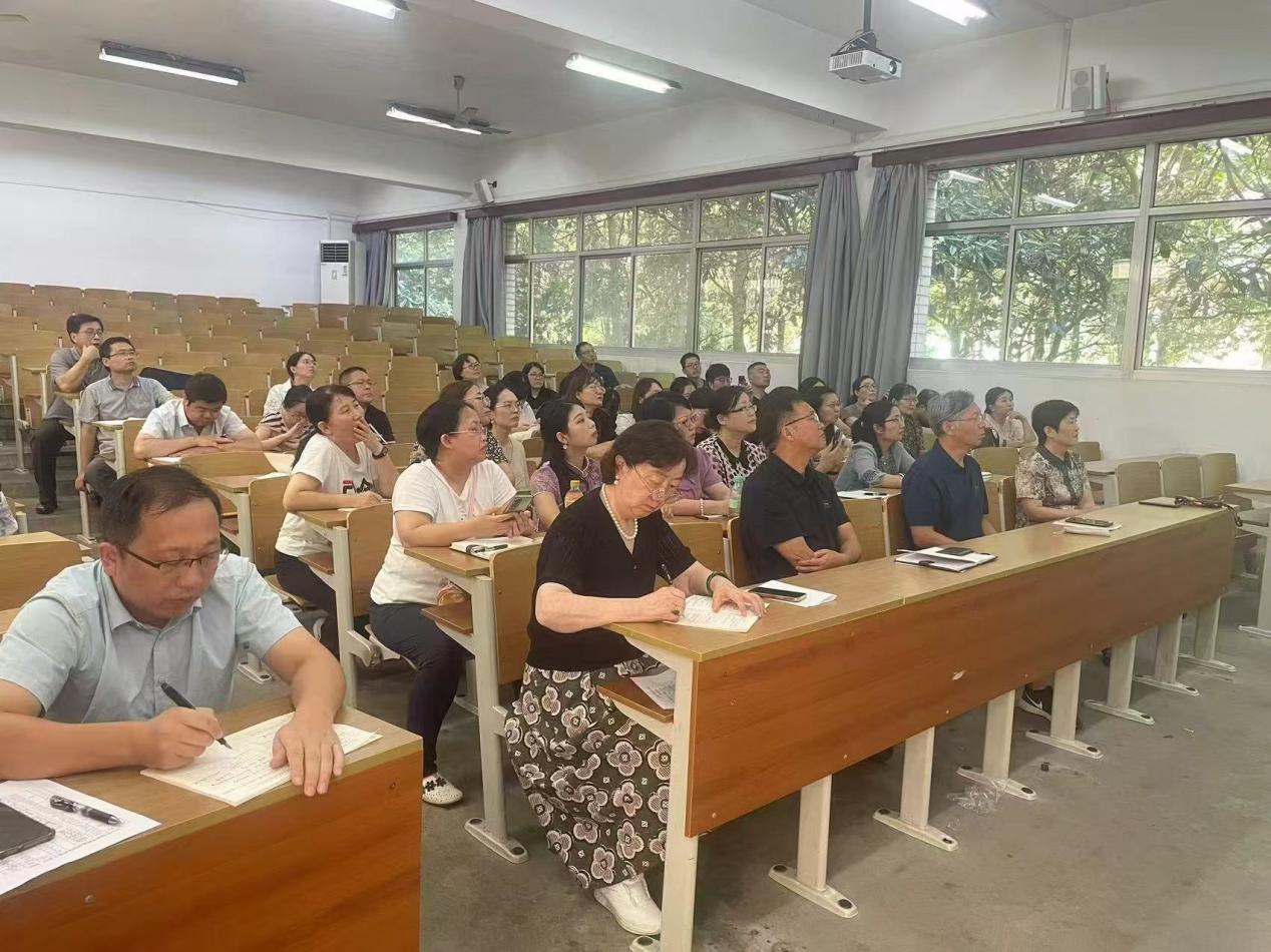 在第二阶段,物理教研室主任白磊结合大学物理课程,详细介绍了知识图谱的构建及知识图谱在课程教学中的应用。英语教研室主任谭艳珍介绍了英语一流课程建设的情况、体会和经验。