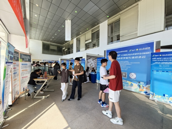 9月24日下午,国产av 联合南京市江北新区在电工电子实验大楼艺术展厅举办校园专场招聘会。新材料、集成电路、智能制造、生物医药等行业的27家企业提供了322个岗位。