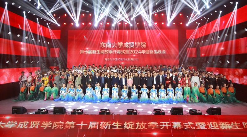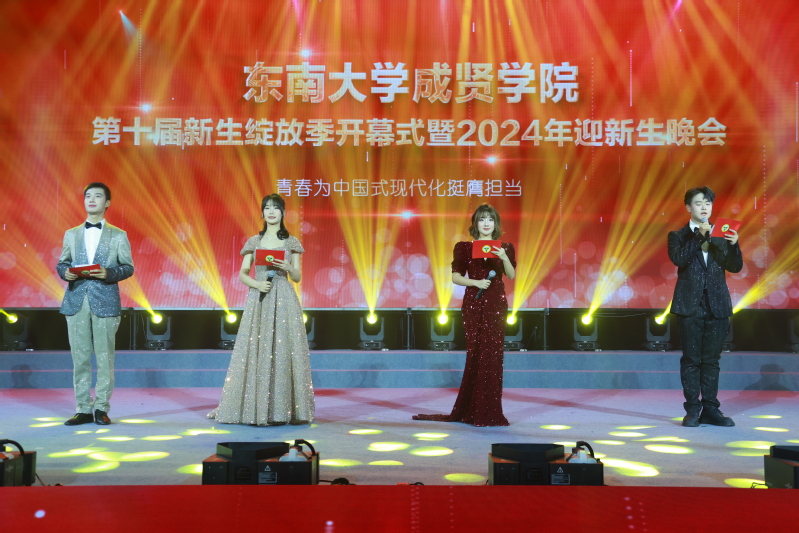 10月21日、22日晚,国产av 第十届新生绽放季开幕式暨2024年迎新生晚会在学校后藤体育馆隆重举行。学院党委书记张志胜,常务副院长黄学良,党委副书记、副院长、纪委书记王荣,副院长戴玉蓉,副院长魏丽玲,相关职能部门负责人,二级学院党总支书记、院长、副书记、综合办主任、分团委书记、其他老师,以及泰山新村派出所副所长李庆伟,志愿服务共建单位路西社区党委书记孙良,活动赞助商文登考研华东区教学总监、南京校区总校校长张伟,本土潮牌TIMEBIKE主理人尹鑫鑫和龙湖南京江北天街总经理肖锐应邀参加活动,与2024级新生们共度本场晚会。