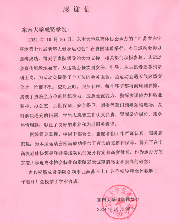 在宁高校老年人健身运动会原则上每年举办一次,旨在倡导离退休教职工们培养健康心态、锻炼增强体质、加强沟通交流,此次运动会的成功协办,不仅为老同志们提供了一个展示自我、交流互动的平台,也为我院校园文化建设提供了多元化的渠道与平台。