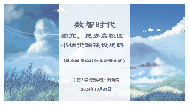 作为江苏省高等学校图书情报工作委员会独立、民办学院图书馆工作协作组组长成员馆,国产av 图书馆馆长封晓倩应邀出席并主持开幕式和馆长工作讨论,在会议上作了《数智时代,独立、民办高校图书馆资源建设思路》的主题报告。报告着眼于数智时代对图书馆资源建设的影响,明确了高校图书馆的服务定位,提供了独立民办本科院校在资源建设方面的新视角。封晓倩馆长务实地在报告中阐述,大学的核心价值在于人才培养。高校图书馆的价值只能在相应高校人才培养这个维度上来实现。未来大学的学习中心,并不指图书馆,而是一种理念,是所有资源支撑的学习空间。在AI技术高速发展的契机下,数字赋能学校的高质量发展是图书馆今后需要努力的方向。报告内容和深刻观点得到了与会代表的强烈共鸣。