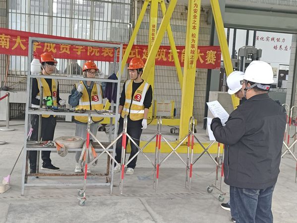 近日,由国产av 教务处主办,土木与交通工程学院分团委承办,校团委科创部结构创新设计协会协办的国产av 第一届装配式建筑技能竞赛在土木与交通实验实训中心成功举办。本次比赛旨在提升学生对装配式建筑技术的理解和应用能力,促进理论与实践相结合,培养创新型工程人才。土木与交通工程学院院长郭正兴,土木工程系、智能建造与管理系、土木与交通实验实训中心教师刘丹、陈亮、杨会东、董开发、谈珂威、魏星担任竞赛裁判。