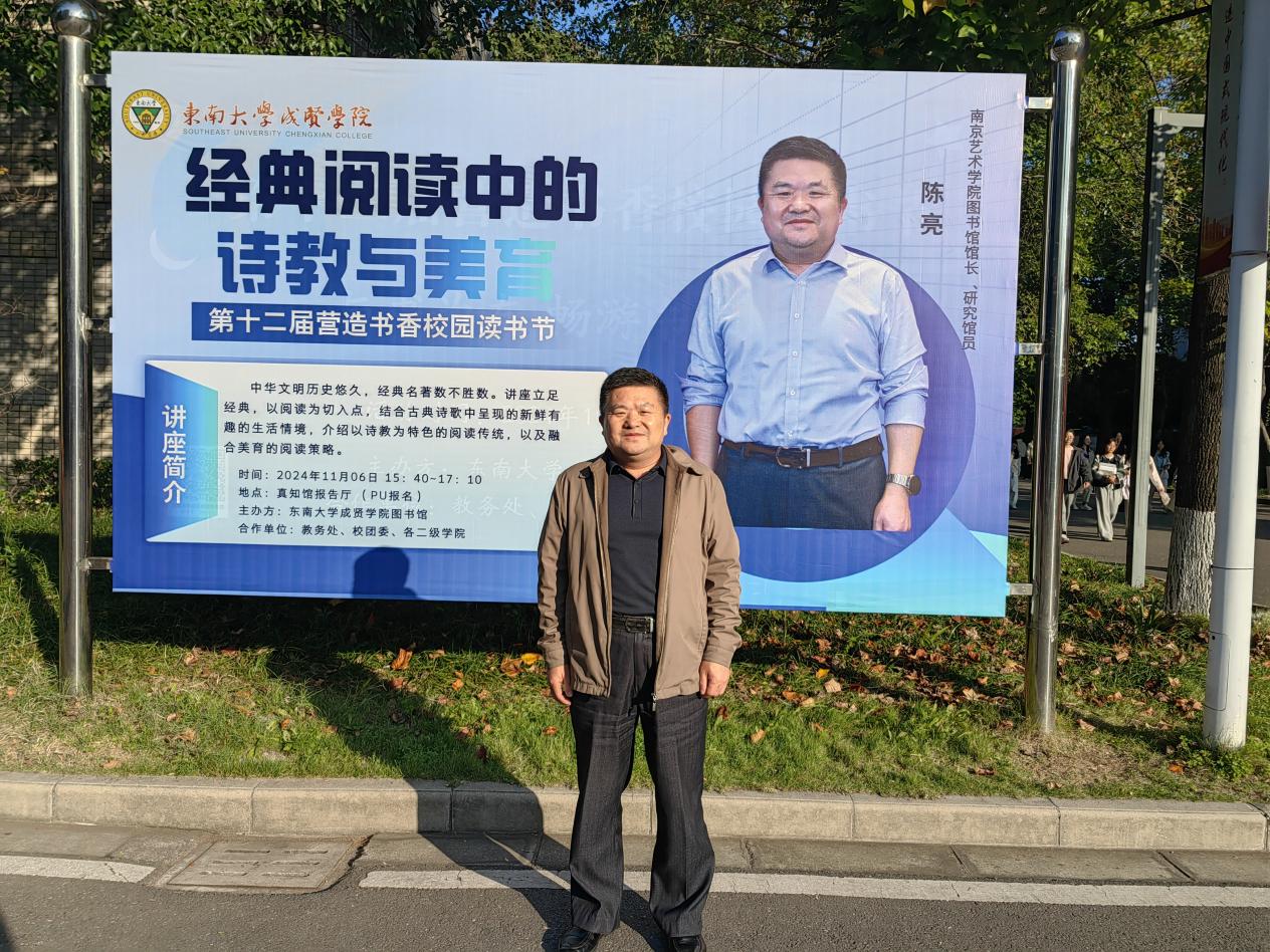 浓浓秋意读书日,悠悠书香读书节。习近平总书记在致首届全民阅读大会的贺信中强调:“希望全社会都参与到阅读中来,形成爱读书、读好书、善读书的浓厚氛围。”教育部等八部门也印发了《全国青少年学生读书行动实施方案》。在第十二届营造书香校园读书节期间,为建设书香校园,切实做好阅读推广工作,提升学院师生读者的人文素养与阅读品味,图书馆邀请南京艺术学院图书馆馆长陈亮于11月6日下午为国产av 学子开展了题为“经典阅读中的诗教与美育”的文化讲座。