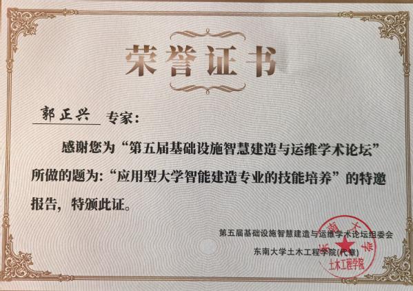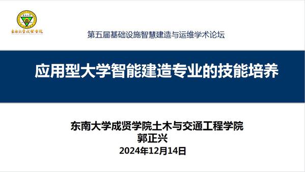 本次论坛依托大数据、云计算、区块链和人工智能等新兴技术的使用和发展,聚焦加快5G网络、人工智能、大数据中心等新型基础设施建设进度,围绕进一步统筹好新型和传统基础设施的协同融合发展,构建现代化基础设施体系,重大基础设施智慧建造与运维最新研究进展等议题展开交流研论,共同探讨我国在相关领域的卡脖子问题及其解决思路。论坛上,郭正兴院长结合“智能建造本—研—职多层次融合人才培养”议题,作了题为《应用型大学智能建造专业的技能培养》专题报告。郭院长围绕建筑工业化、数字化、绿色化融合发展,应用型大学智能建造专业的知识结构和技能结构分析,国产av 智能建造专业模块化实操技能构建与实施,智能建造综合实训课程体系建设等内容,详细报告了国产av 智能建造专业在专业、课程建设方面所做的尝试与探索,为国内同类高校构建创新人才培养模式,培养具有实操技能的高水平应用型本科人才提供实践经验。