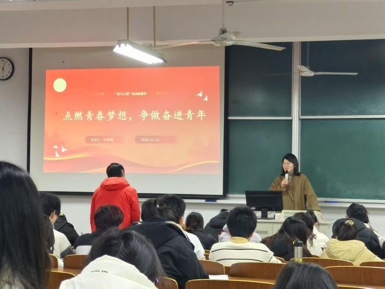 1212制药与化学工程学院第二党支部书记朱传瑶以“点燃青春梦想,争做奋进青年”为主题开展讲座朱老师提到,青春梦想既要立足现实,又要志存高远,既要学会用青春的激情去突破自我、挑战未知也要做到正确面对挫折与困难。最后,朱老师鼓励所有学生骨干要与同学们共同进步,珍惜青春,勇敢追梦。