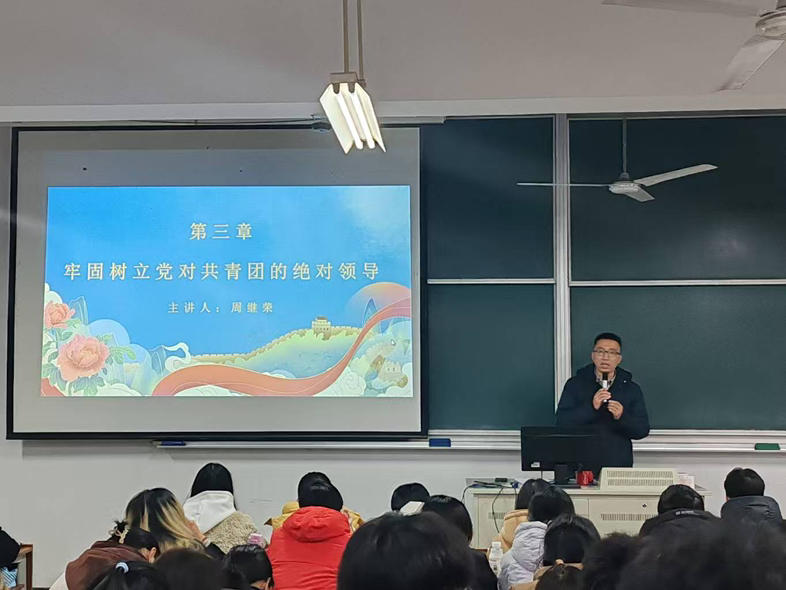 12月9日,制药与化学工程学院党总支书记周继荣为本期青马工程作开班动员讲话并以“牢固树立党对共青团领导为主题开讲。周继荣书记以深厚的理论功底和丰富的实践经验,阐述了党对共青团领导的深刻内涵。通过一个个鲜活的案例和一组组详实的数据,让在场的听众深刻领悟到党团紧密相连的血脉关系。此次讲座在热烈的掌声中圆满结束,广大团干部与青年工作者们纷纷表示深受启发,深刻认识到牢固树立党对共青团领导的重要性,今后将为实现中华民族伟大复兴的中国梦贡献青春力量,让青春在党旗下熠熠生辉。