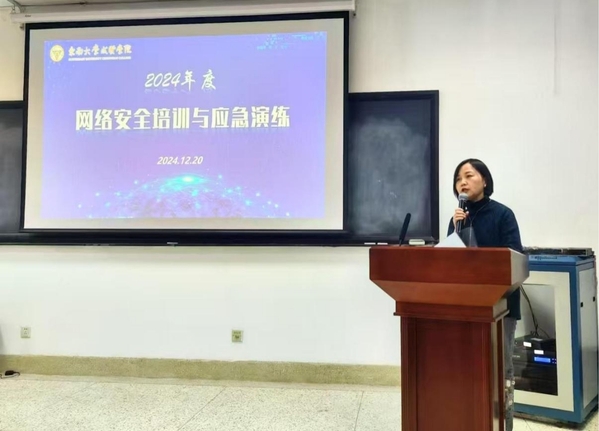 培训会邀请了南京市公安局网安支队网络治安管理大队文雯中队长作题为《提升网络安全意识,筑牢网络安全空间屏障》的专题报告。文警官在报告中,从网络安全概念切入,结合典型案例,特别是一些发生在高校内的案例,就当前网络安全形势、网络安全风险、网络安全法律法规等内容进行了详细讲解,并提出了相应的解决措施。文警官的专题报告让与会人员清醒认识到了网络安全的严峻形势,以及做好网络安全工作的重要性和紧迫性,从而增强网络安全意识,提高自身网络安全防护能力。