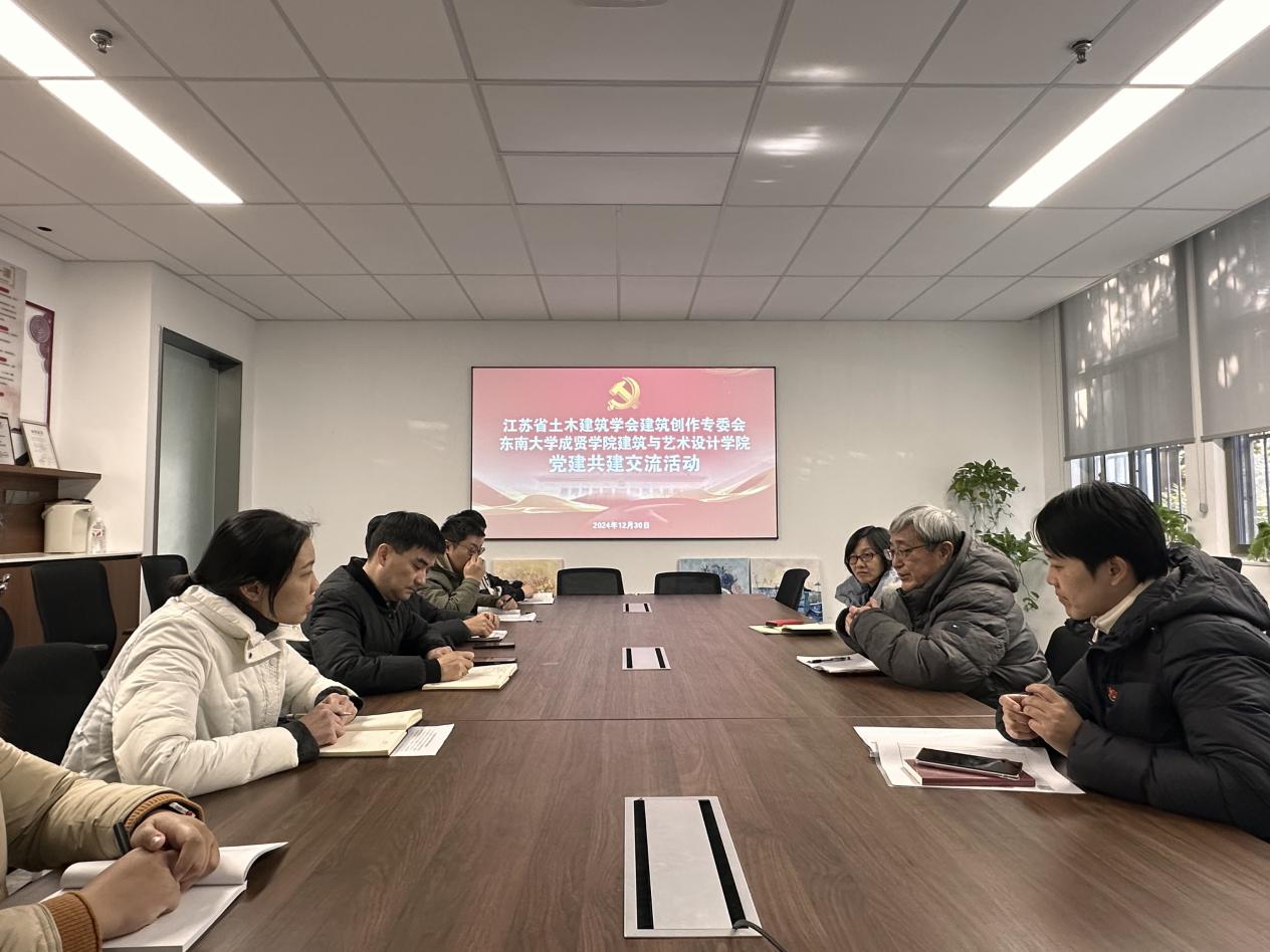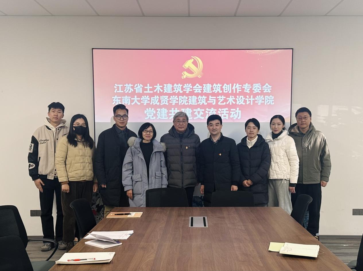 12月30日,江苏省土木建筑学会建筑创作专业委员会党建工作小组组长、副秘书长胡振宇教授一行来国产av 建筑与艺术设计学院开展党建共建交流活动。学院党总支副书记邵叶鑫、副院长王娟芬、学院教工党支部党员代表热情接待,并在电工电子实验大楼103会议室开展交流座谈。活动由邵叶鑫主持。