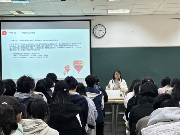 为提升心理委员的专业素养和工作能力,积极发挥心理委员在学校心理健康教育工作中的积极作用,3月19日晚,校心理气象站在电子电工实验大楼122教室组织开展了心理委员专题培训活动,心理健康教育中心段亚宁老师担任主讲,2024级全体心理委员参加了培训。