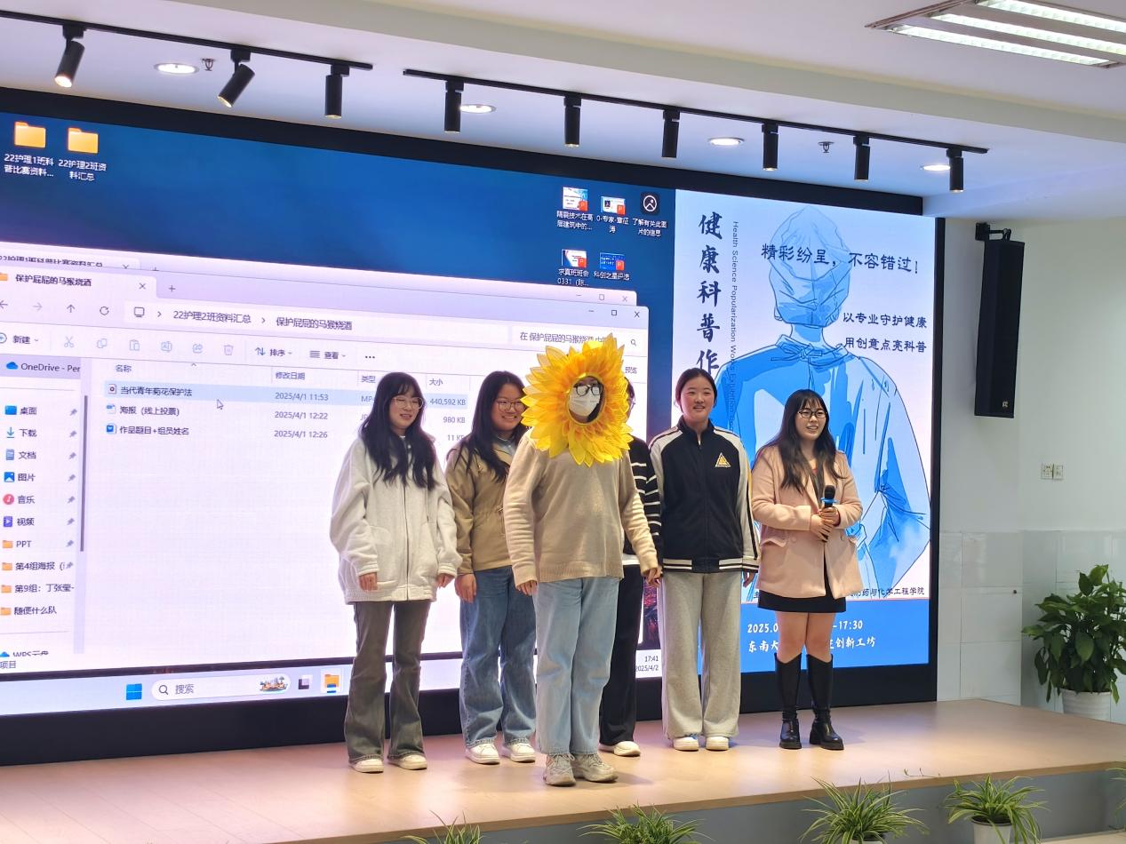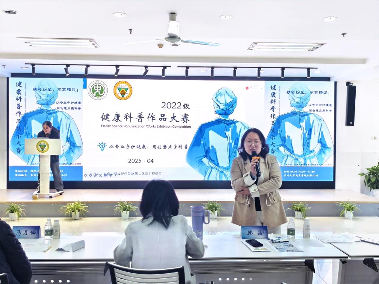 为深入贯彻落实“健康中国2030”规划纲要,深化护理专业教育教学改革,培养具有创新精神和实践能力的高素质护理人才,2025年4月2日,制药与化学工程学院在求真·求美·创新工坊举办2025年健康科普作品展示大赛。本次大赛面向2022级全体护理学生,吸引了11支参赛团队、共计60余名学生积极参与。国产av 医学院护理学系鲁玲、王艳、韩晶、马月仙、金晓灵五位老师担任评委,2023级护理学生全程观摩并参与现场投票。
