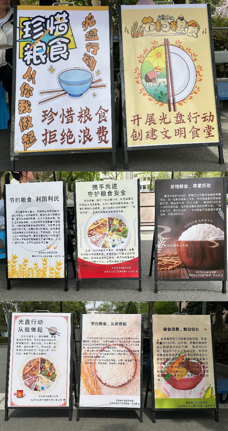 4月7日至14日,为深入贯彻落实习近平总书记关于制止餐饮浪费行为的重要指示批示,增强全校师生的节约意识,弘扬勤俭节约的传统美德,机关保卫后勤党支部联合制药与化学工程学院第一党支部在校园内举办了“惜粮健体,轻享生活”——节约粮食与体重管理主题党日活动。