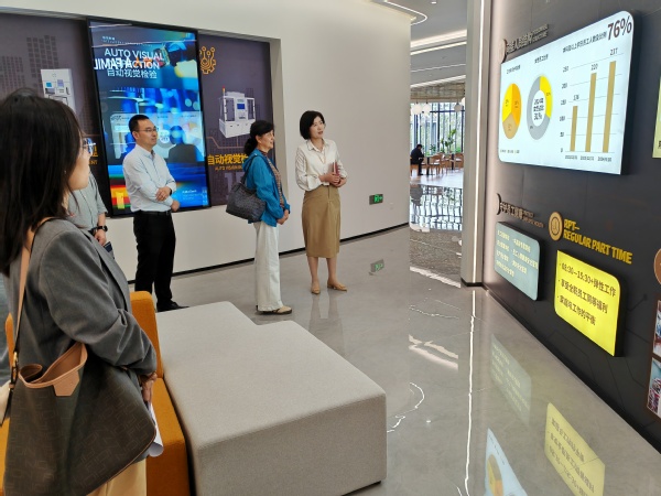 活动当天,电子与计算机工程学院执行院长王晓蔚、党总支副书记羊栋、综合办主任冯杭州、院长助理弭娜一行在浦口区人社局就创中心主任徐风的陪同下,先后走访芯爱科技(南京)有限公司、华天科技(南京)有限公司等集成电路领域龙头企业。通过参观企业展厅、生产车间,校方深入了解了集成电路封装测试、高端基板研发等产业前沿技术,并与企业围绕人才培养、实习实训、科研合作等展开交流。
