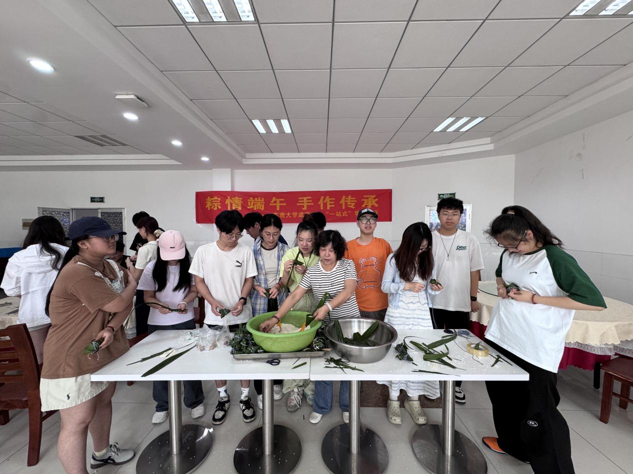 “一站式”学生社区精心策划此次传统文化体验活动,带领同学们沉浸式感受端午习俗魅力。活动现场,师生们捋粽叶、填糯米、扎粽绳,将对传统节日的美好祝福包进清香的粽叶中。在亲手制作粽子的过程中,大家不仅体验到动手的乐趣,更深入了解到端午包粽子习俗背后的文化内涵,在品尝传统美食的同时,领略到中华传统文化的深厚底蕴。