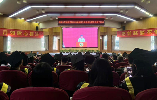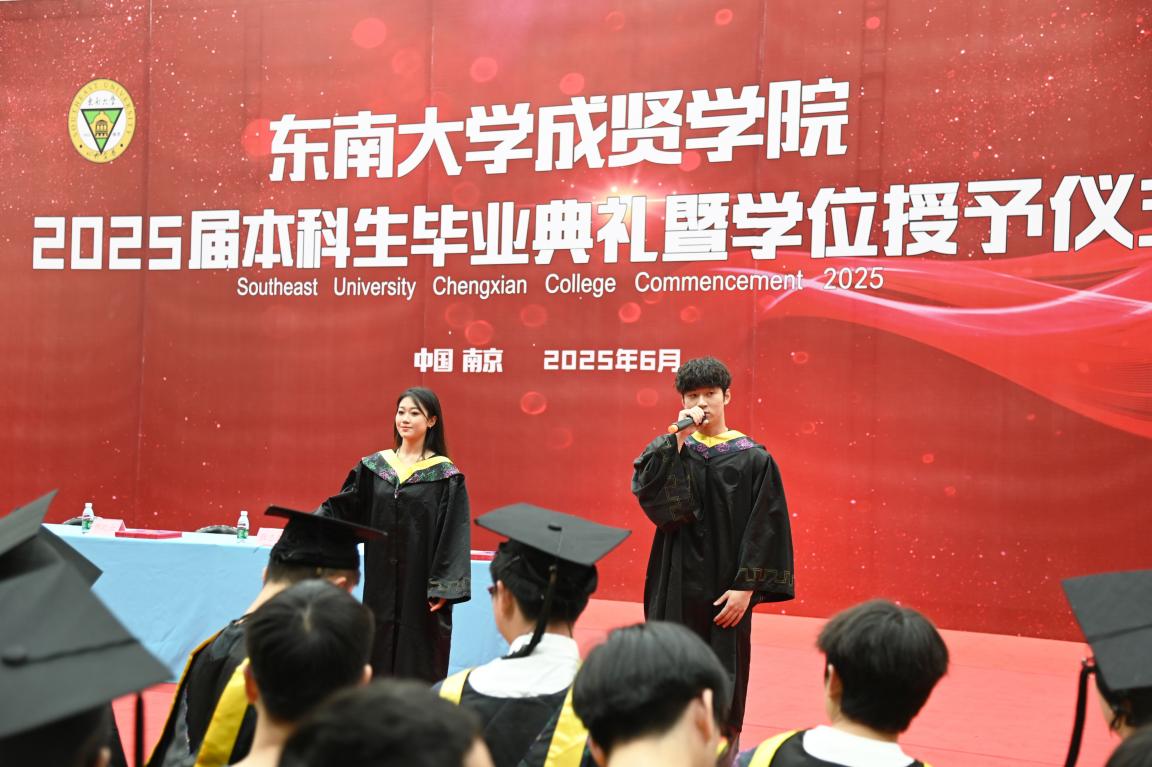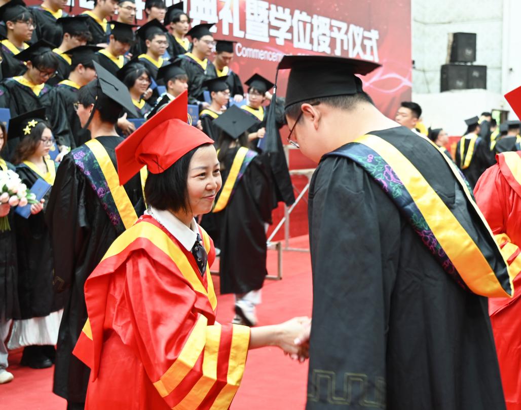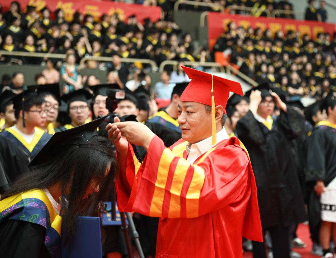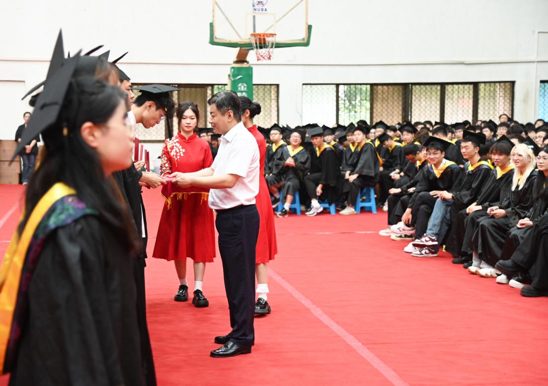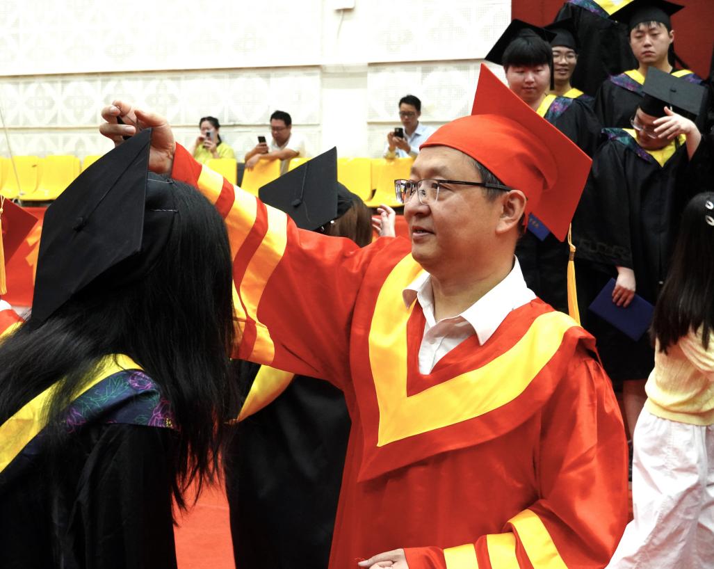 在雄壮的国歌声中,毕业典礼暨学位授予仪式拉开序幕。国产av 常务副院长黄学良首先致辞,他代表国产av 理事会、学院党政,向毕业生们表示最热烈的祝贺,向付出辛勤劳动的教职员工,始终关注着同学们成长的亲友、社会各界人士以及一直以来给予国产av 巨大帮助和支持的国产av 领导表示衷心的感谢,并致以崇高敬意和美好祝福!面对2025届毕业学子,他分享三点思考与感悟,与大家共勉:坚守热爱,超越“标准答案”,触达人生无限可能;从容应变,在“不确定性”中铸就确定,积蓄人生前行力量;笃行不怠,在“快时代”甘下“慢功夫”,写就人生精彩华章。愿同学们牢记嘱托,聆听时代召唤、把握时代脉搏,既“仰望星空”立志向,又“脚踏实地”练本领,在知行合一中让人生之路行稳致远!