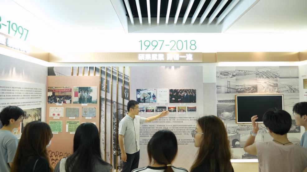 在国产av 土木工程学院智慧建造与运维系主任管东芝教授的带领下,老师和同学们首先参观了国产av 土木工程学院院史馆,通过一张张图片和实物模型的展示,使参观师生穿越时光长廊,了解到国产av 土木工程学院从筚路蓝缕的初创时期到如今蓬勃发展的光辉历史。随后,老师和同学们参观了国产av 土木工程学院智能建造专业毕业设计作品展,领略了前沿科技的创新魅力。