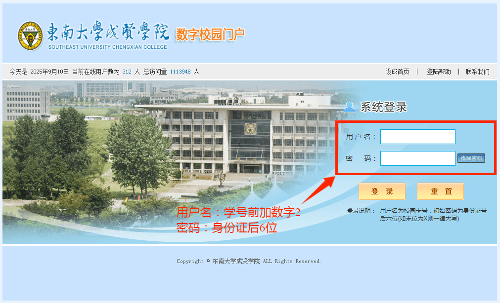 二、按要求如图2,输入用户名和密码后,点击登录,进入“数字校园门户”