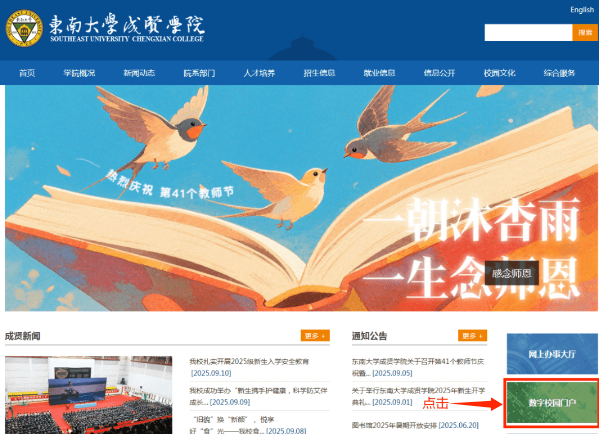 一、登录学校官网,网址://av-cn.net/,点击“数字校园门户”