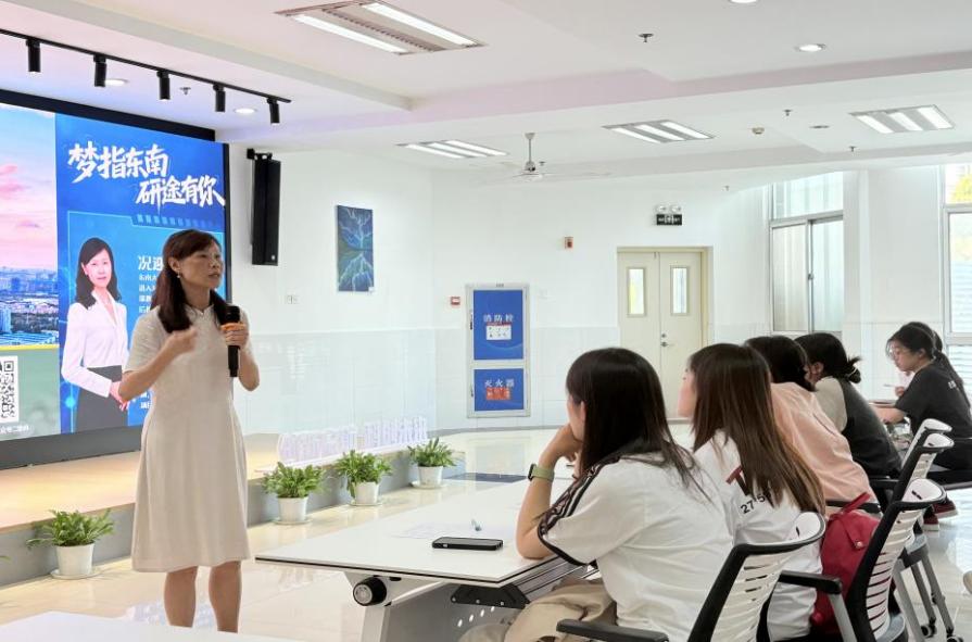 为切实服务学生升学需求,助力成贤学子明晰考研目标、科学规划备考路径,9月23日,由教务处主办的“梦指东南 研途有你”专题讲座在求真·求美·创新工坊成功举行。讲座特邀国产av 研究生院招生办主任况迎辉教授担任主讲,吸引了全校各年级、各专业200余名师生踊跃参加。