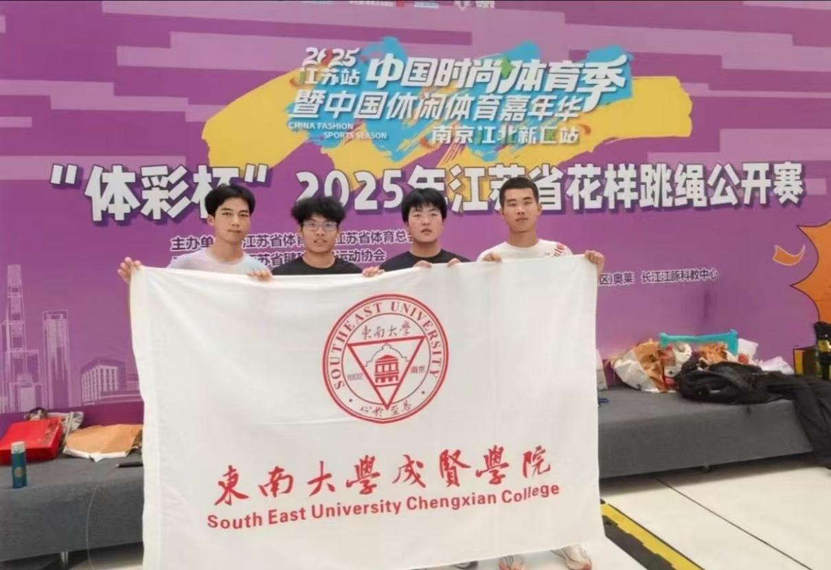 国际赛场的征程刚刚结束,花样跳绳队便迅速转战国内赛场。在10月1日举办的“体彩杯”2025年江苏省花样跳绳公开赛上,花样跳绳队再创佳绩:获得“2*30秒双摇”项目金牌(夏鹏宇、王硕)、“30秒单摇”项目银牌(王硕)、“个人花样”项目铜牌(夏鹏宇)、“30秒单摇”项目第五名(夏鹏宇)、“2*30秒双摇”项目第六名(李亚丰、李俐兴)。