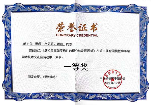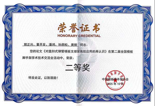 为鼓励科技创新、促进学术交流,本届大会同步开展优秀科技论文评选。经过20位行业权威专家严格评审与规范流程筛选,最终评选出31篇优秀论文。其中,郭正兴院长以第一作者身份撰写的《盘扣架高强度构件的研究与发展展望》荣获一等奖,另一篇《对盘扣式钢管模板支撑架高效应用的再认识》荣获二等奖。两篇论文均立足行业发展需求,围绕模板脚手架技术的创新突破与实践应用展开深度研究,不仅为行业技术升级提供理论支撑,更体现国产av 教师团队“产学研用结合”的研究导向,进一步巩固学校在土木工程领域的学术地位。