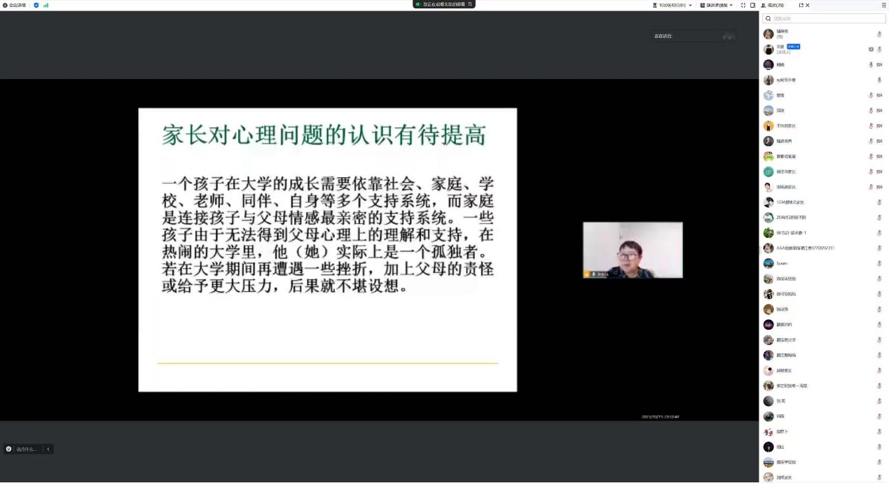 此次讲座既帮助家长深入理解了大学生适应期的心理特点与需求,掌握了科学的亲子沟通与支持方法,也进一步凝聚了家校协同育人的共识,搭建起家校联动守护学生心理健康的桥梁,为学子平稳度过大学适应期、实现身心健康与全面发展筑牢了坚实保障。