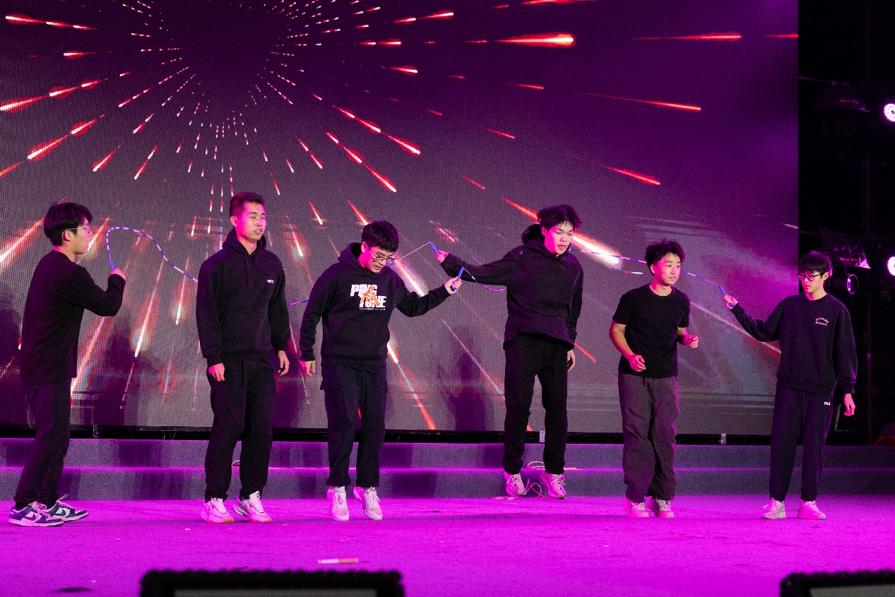 电声社动感十足的热场演出率先点燃全场氛围,新生们怀揣期待有序入场。随着开场舞《少年之名》的欢快旋律响起,青春的活力在草坪上肆意绽放,晚会正式拉开帷幕。