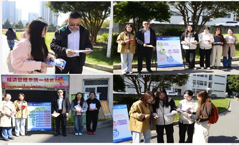 为全面提升学生金融素养,增强风险防范意识,引导学生自觉远离“校园贷”、“金融贷”等陷阱,11月1日至15日,经济管理学院成功举办“第八届大学生金融节进校园”系列活动。本次活动构建了多层次、全覆盖的宣传教育体系,涵盖金融知识主干道及一站式学生社区宣传、专题讲座、辅导员主题班会等多个板块,将金融安全教育有机融入学生日常学习与生活场景,深化同学们的风险防范意识。活动累计吸引各专业近2000名学生踊跃参与,经济管理学院党总支书记潘明烽、综合办主任程希羲、分团委书记潘天娇及全体辅导员参与活动指导,营造了全院共筑金融安全防线的良好氛围。