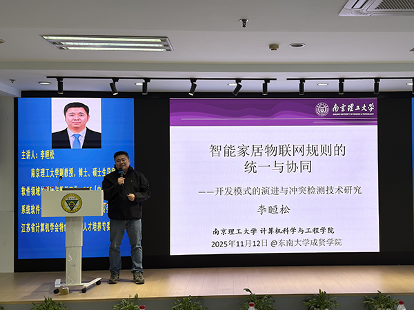 为聚焦学科前沿动态,深化师生对智能家居物联网技术的认知,11月12日,电子与计算机工程学院特邀南京理工大学李晅荣副教授,在求真・求美・创新工坊开展了《智能家居物联网规则的统一与协同——开发模式的演进与冲突检测技术研究》专题讲座。本次讲座吸引了学院200余名师生到场聆听。